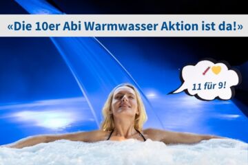 Ready für 11x Warmwasser-Wohlsein? 🔥💛 Hol dir das 10er Abi – und wir schenken dir 2 Eintritte! Vom 24.11.–08.12.2025 liegt dein 10er Abi Warmwasser am Empfang bereit. Du zahlst 9 Eintritte, bekommst aber 11. Mehr planschen, mehr entspannen, mehr für dich! ✨