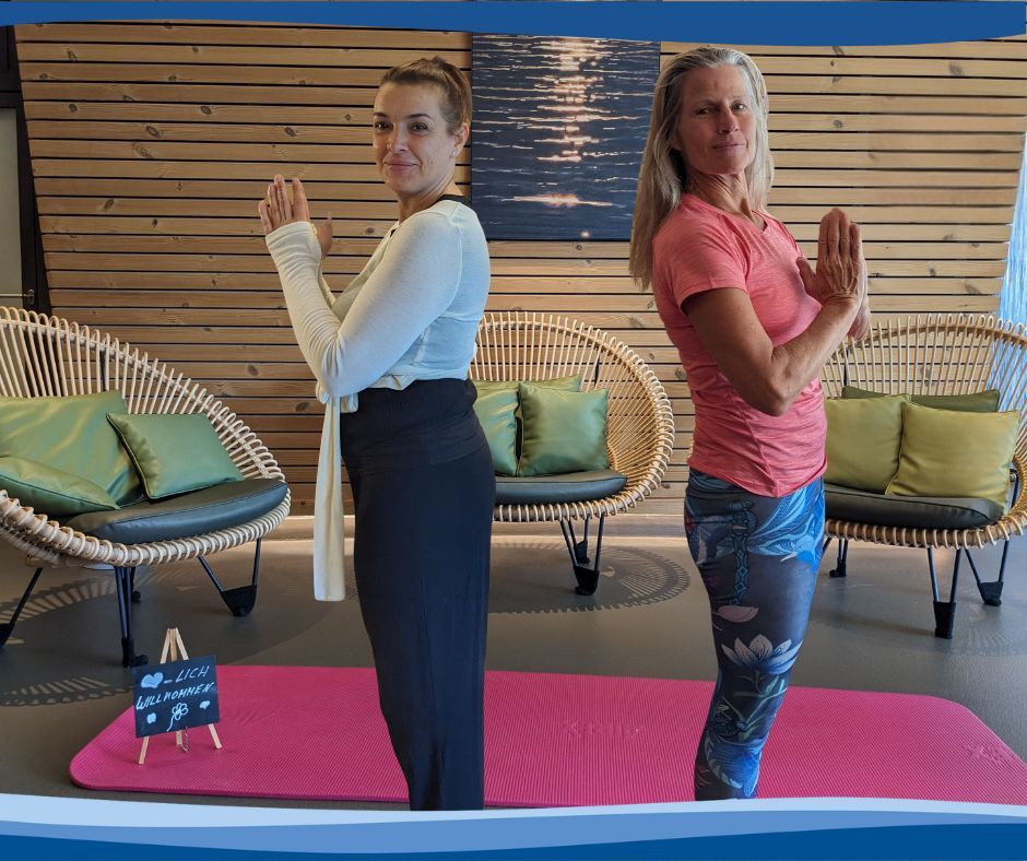 Unser neues Yoga-Angebot findet im gemischten Wellnessbereich statt. Zwei Power-Frauen begleiten dich auf der Matte: Mona & Katrin bringen viel Erfahrung mit und holen dich dort ab, wo du gerade stehst – egal, ob du Yoga zum ersten Mal ausprobierst oder deine Praxis vertiefen möchtest.
